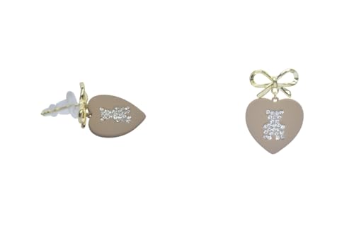 Generic - اقراط متدلية بلاتينيوم مع فيونكة وقلب تيدي بير للنساء - ذهبي وبني