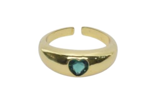 Generic - خاتم بلاتينيوم على شكل قبة مرصع بحجر قلب بلون ازرق مخضر للنساء، مقاس واحد - ذهبي