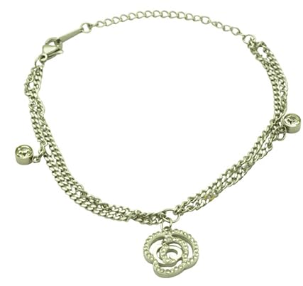 Generic - سوار بلاتينيوم مزدوج السلسلة بدلاية كاميليا للنساء