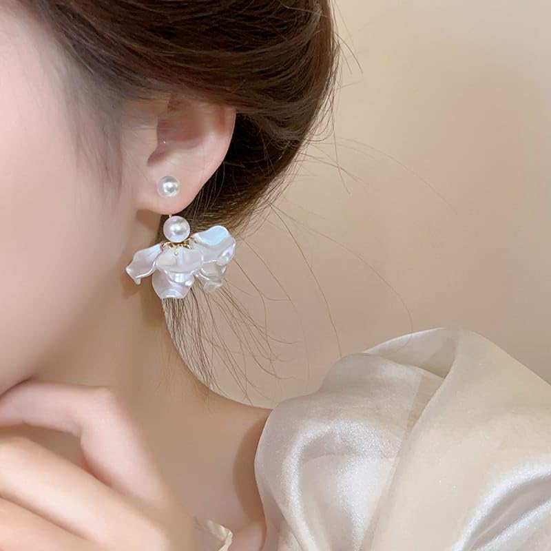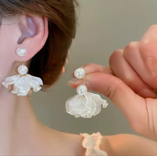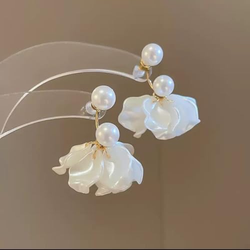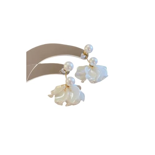 Generic - اقراط بلاتينيوم من الاكريليك بتصميم زهرة لؤلؤ مصنوعة من البلاتين الحقيقي، اكسسوارات من الستانلس ستيل، اقراط ومجوهرات.