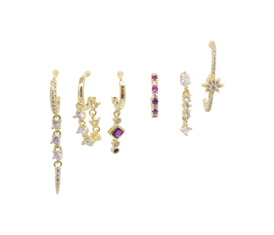 Generic - طقم اقراط بلاتينيوم للنساء، 6 قطع