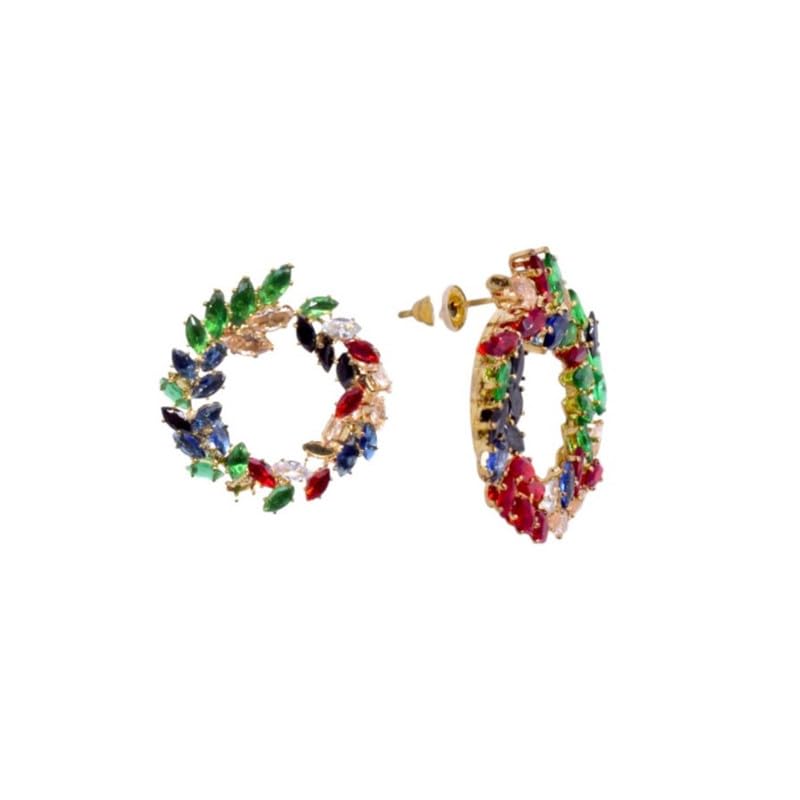 Generic - اقراط مرصعة بالزمرد على شكل اكليل الغار للنساء من بلاتينيوم