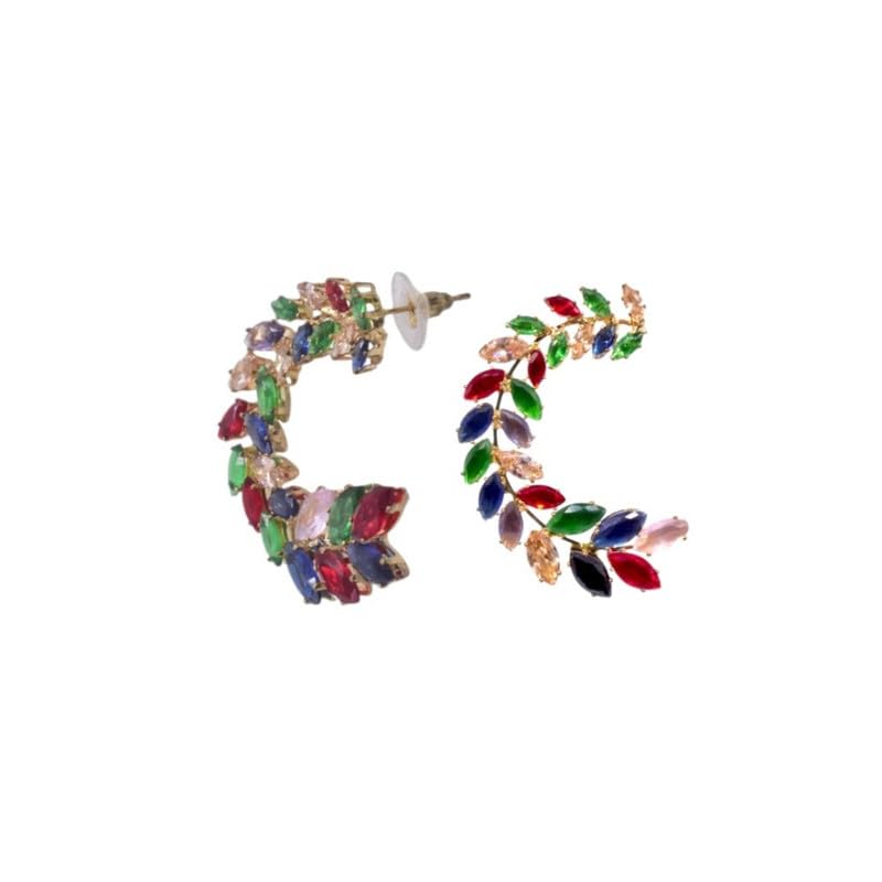 Generic - حلق بريمة متعدد الالوان على شكل ورقة شجر على شكل حرف C للنساء من بلاتينيوم - ذهبي