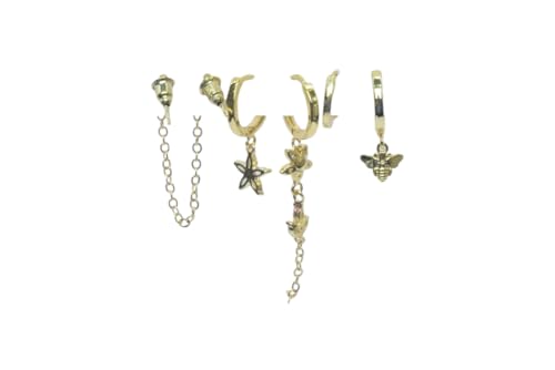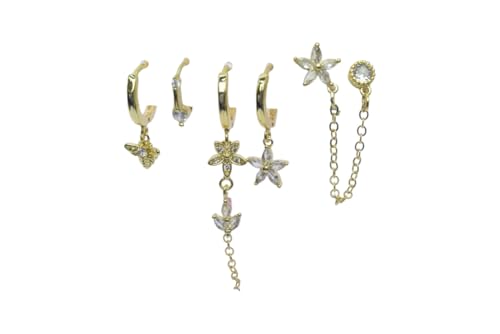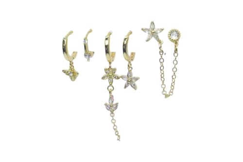 Generic - طقم اقراط متعددة القطع من بلاتينيوم بتصميم زهور وسماوية للنساء - ذهبي