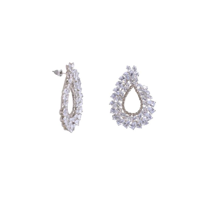 Generic - اقراط حلقية مرصعة باحجار كريمة بلاتينيوم للنساء
