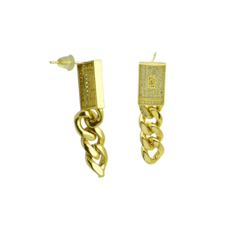 Generic - اقراط بدبوس متدلية على شكل سلسلة بافي بلون ذهبي للنساء من بلاتينيوم - ذهبي