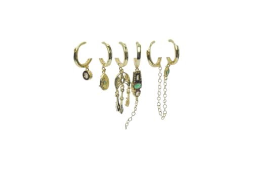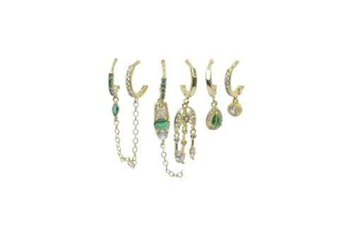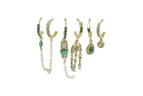 Generic - طقم اقراط بلاتينيوم من الاحجار الكريمة الخضراء والشفافة للنساء - ذهبي