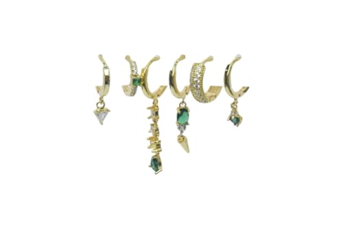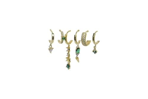 Generic - طقم اقراط متعددة الثقب بلون اخضر وشفاف للنساء من بلاتينيوم - ذهبي