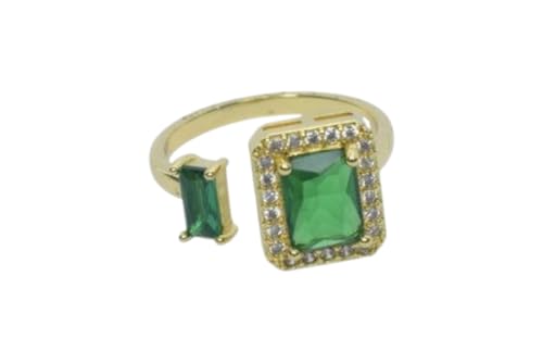 Generic - خاتم عريض بلون أخضر بلاتينيوم بتصميم هالو وباجيت للنساء، مقاس واحد - لون ذهبي