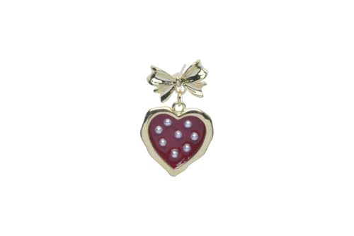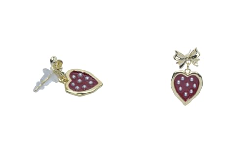 Generic - اقراط بلاتينيوم متدلية على شكل قلب وفيونكة مع مينا حمراء ولمسات من اللؤلؤ - ذهبي ونبيتي