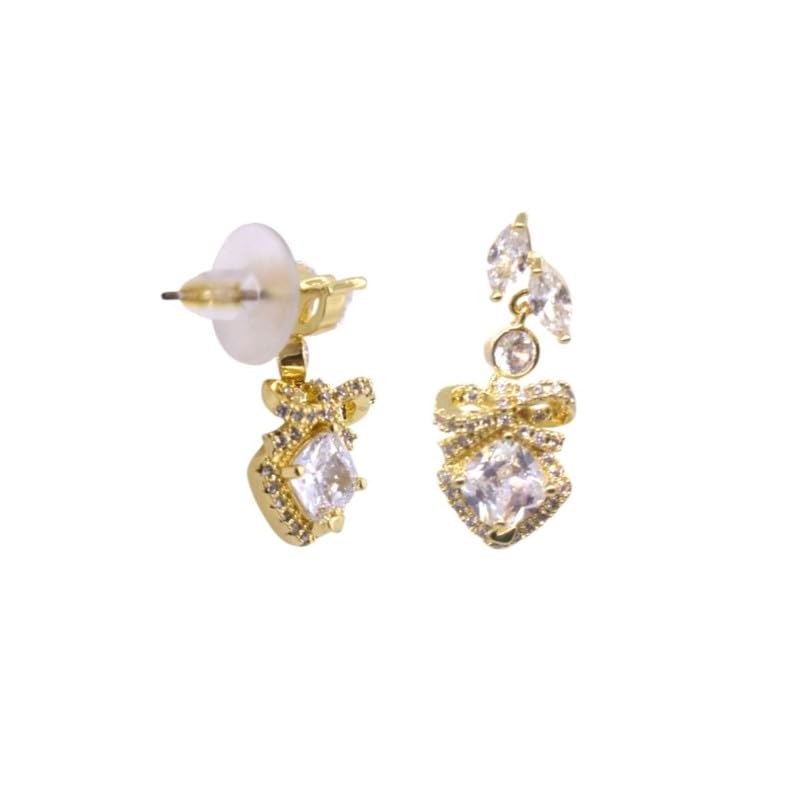 Generic - اقراط متدلية على شكل قلب وفيونكة للنساء من بلاتينيوم - ذهبي