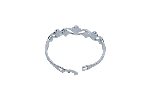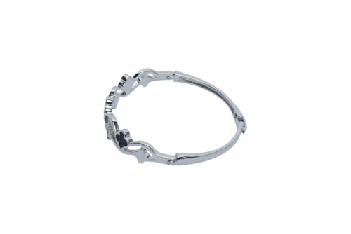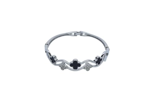 Generic - سوار حلقي بمفصلات من البلاتين مع زخارف برسيم سوداء وشفافة للنساء - فضي