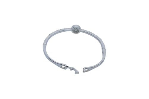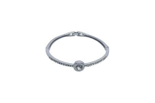 Generic - سوار حلقي بمفصلات من البلاتين مع حجر شفاف مركزي ولمسات بافيه للنساء - فضي