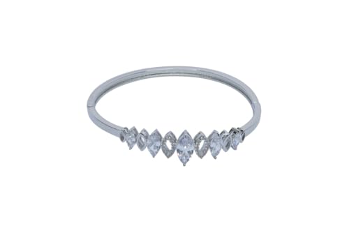 Generic - سوار حلقي بمفصلات من البلاتين مع احجار زهور وعنقودية للنساء - فضي 2