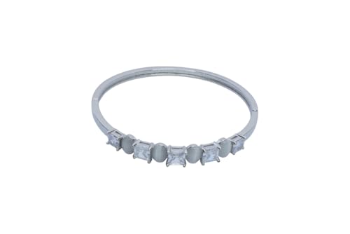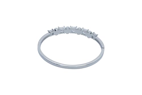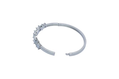 Generic - سوار حلقي بمفصلات من البلاتين مع احجار بيضاء وشفافة بتصميم مموج للنساء