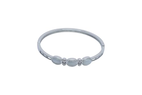 Generic - سوار بمفصلات من البلاتين مع احجار بيضاوية بيضاء وشفافة للنساء - فضي
