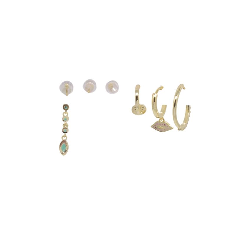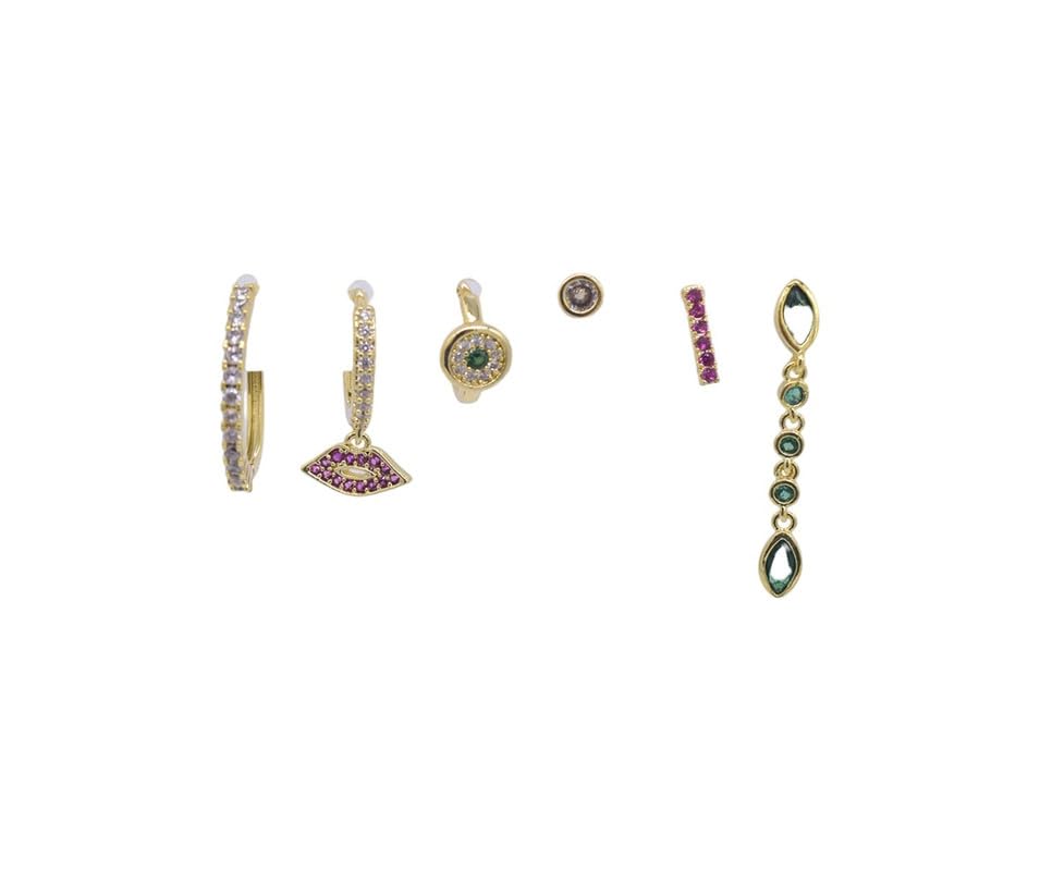 Generic - طقم اقراط حلقية ودبوس من بلاتينيوم مع دلايات ملونة للنساء، 6 قطع - ذهبي