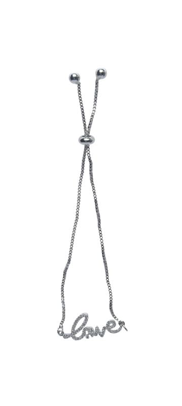 Generic - سوار بولو بلاتينيوم بكلمة "Love" مع احجار شفافة للنساء - فضي