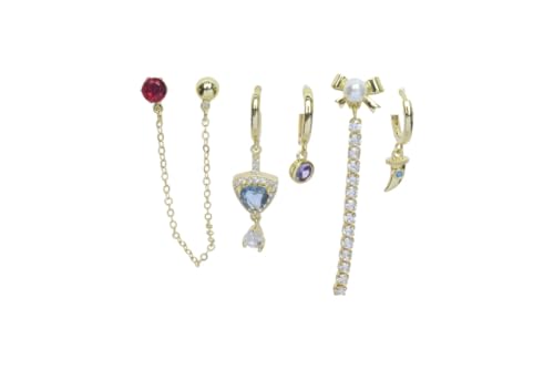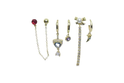 Generic - طقم اقراط بلاتينيوم متعددة الزخارف واحجار ملونة للنساء - ذهبي