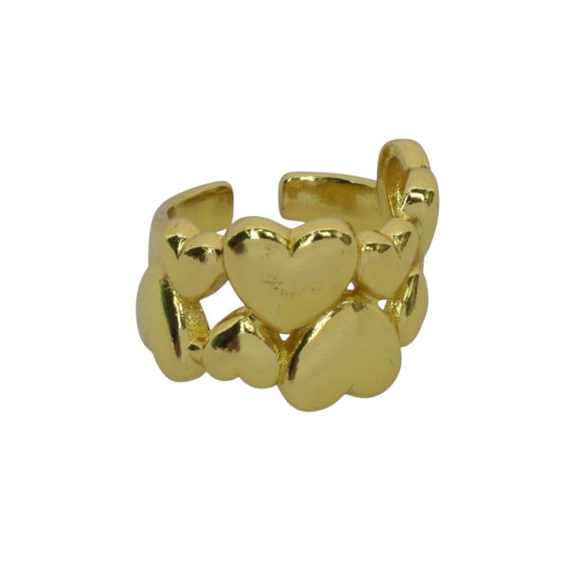 Generic - خاتم بلاتينيوم بتصميم قلوب متداخلة قابل للتعديل للنساء، مقاس واحد - ذهبي
