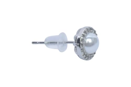 Generic - حلق بريمة من اللؤلؤ البلاتيني مع هالة من الاحجار الشفافة للنساء - فضي