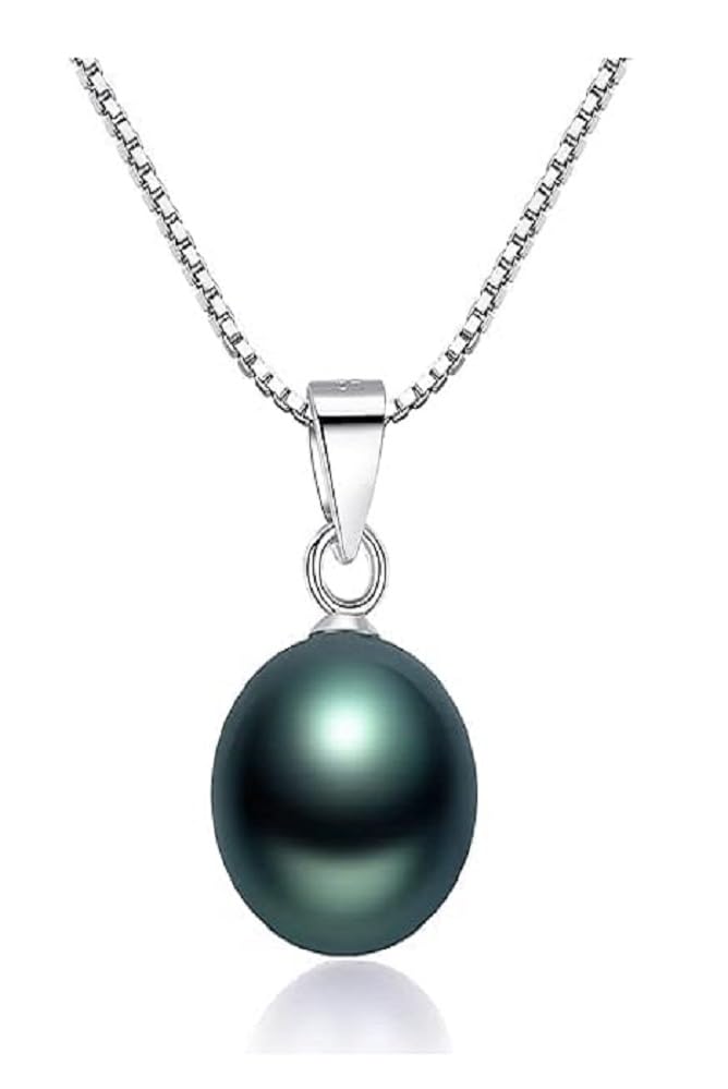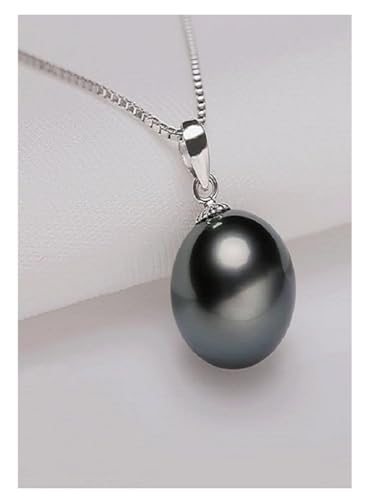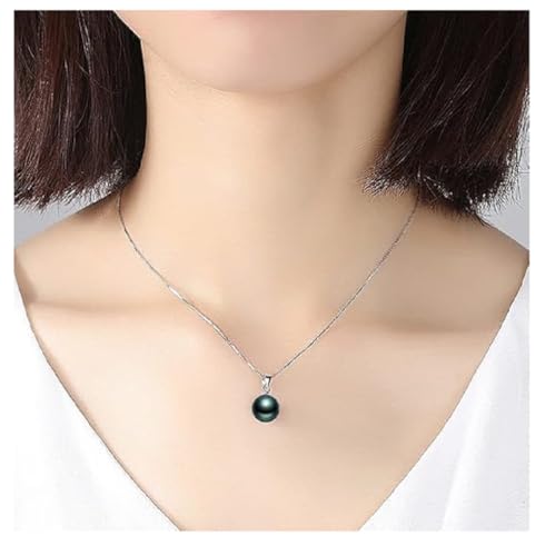 Other - قلادة وتعليقة من الفضة المطلية بالبلاتين مع اللؤلؤ التاهيتي الطبيعي بحجم 14 مم لون أسود