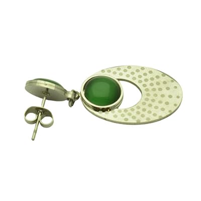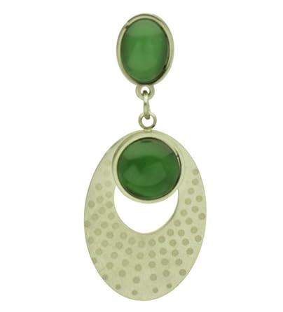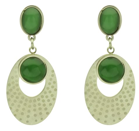 Generic - اقراط متدلية من الفضة البلاتينية مرصعة بحجر اخضر للنساء - ذهبي واخضر