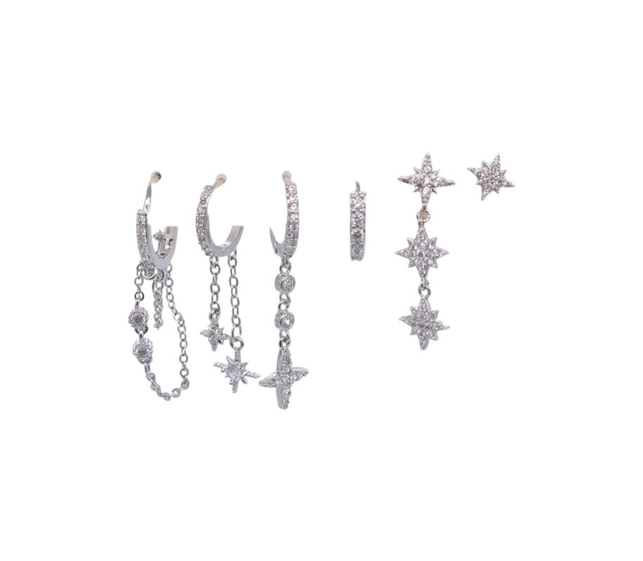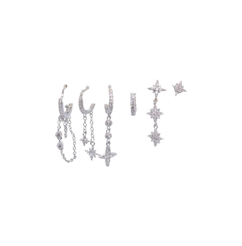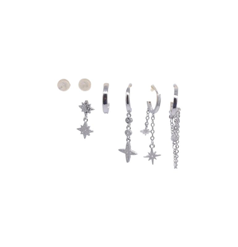 Generic - طقم اقراط بلاتينيوم ستار للنساء، 6 قطع