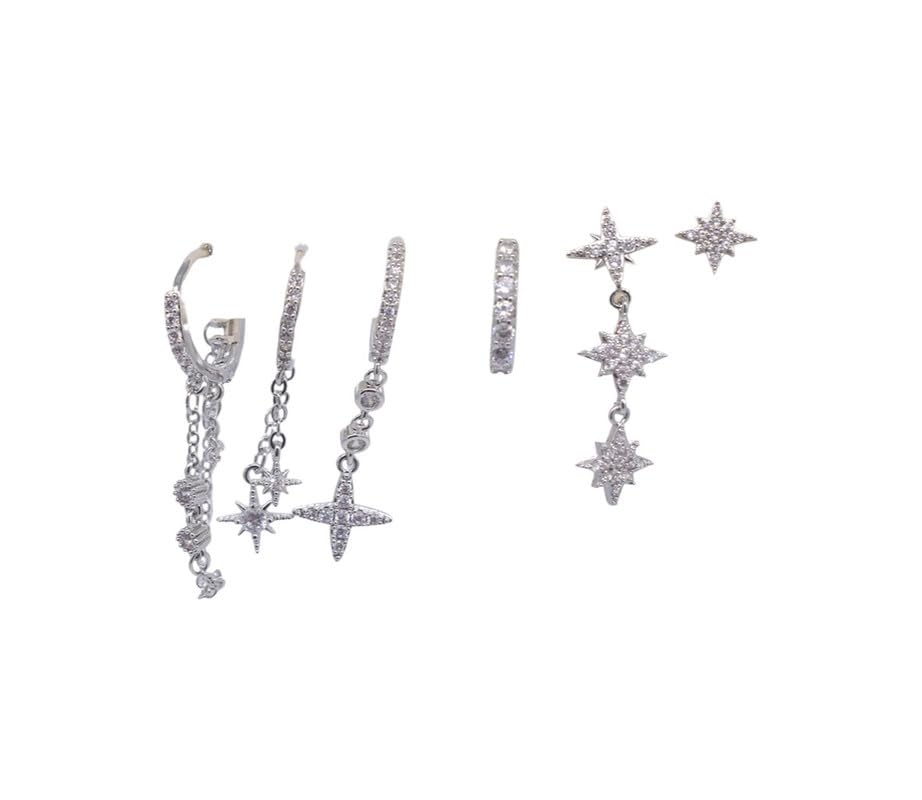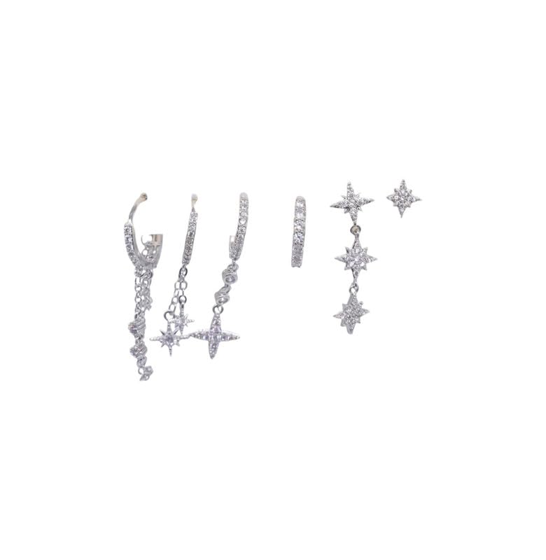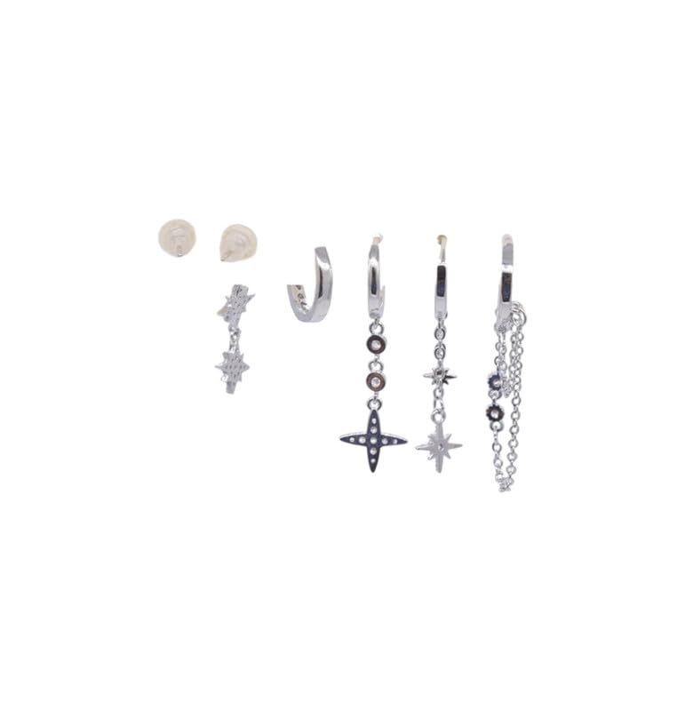 Generic - مجموعة اقراط ستار نايت من بلاتينيوم للنساء، 6 قطع - فضي