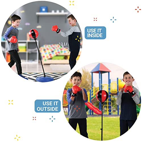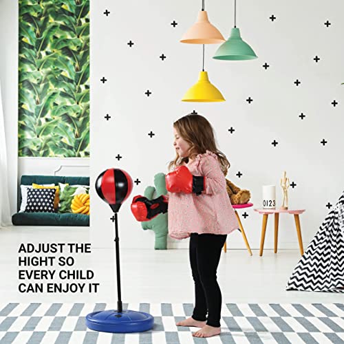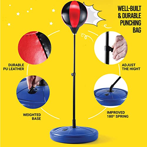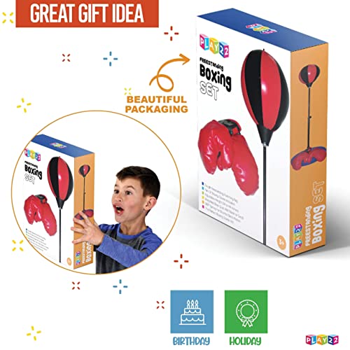 Play22 - مجموعة ملاكمة للأطفال من بلاي22، قفازات ملاكمة للأطفال وكيس ملاكمة مع حامل ومضخة قابل للتعديل، كيس ملاكمة قائم بذاته من جلد صناعي، مجموعة أكياس ملاكمة هدية للأولاد والبنات