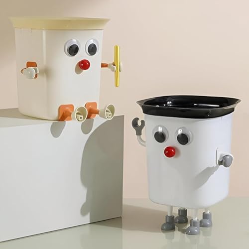 Generic - سلة مهملات روبوت مرحة - سلة مهملات رائعة على شكل روبوت مع اذرع وارجل وعيون متحركة، مثالية لغرف الاطفال والحمامات والمكاتب؛ تصميم ابيض 35 × 27 سم يضيف المرح للتخلص من القمامة اليومية.