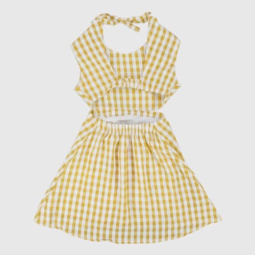 Playmore - بلاي مور فستان بدون اكمام بنقشة مربعات للجنسين لون اصفر