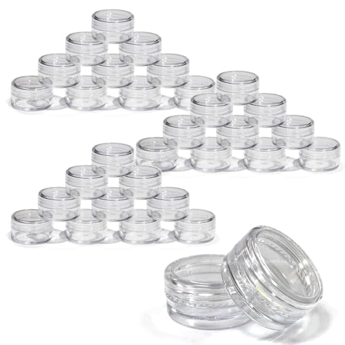 PLAZOTTA - برطمانات مستحضرات التجميل الشفافة سعة 3 جم مع أغطية، حاويات عينات فارغة للمكياج والعناية بالبشرة ومرطب الشفاه والتخزين أثناء السفر، برطمانات كريم شفافة من بلازوتا، 120 قطعة