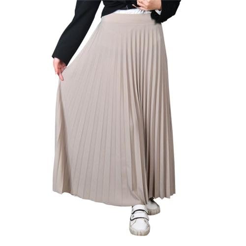 Generic - جيبة ماكسي بكسرات بطول الكاحل وأستيك برباط عند الخصر، أسود