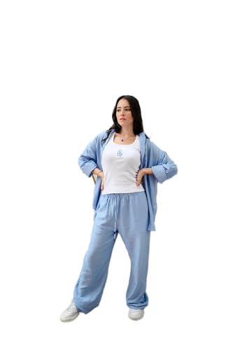 Generic - بنطلون من القطن والكتان للنساء من بلين دي في، نمط سادة