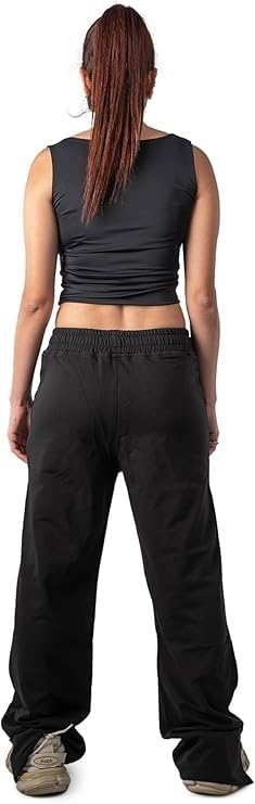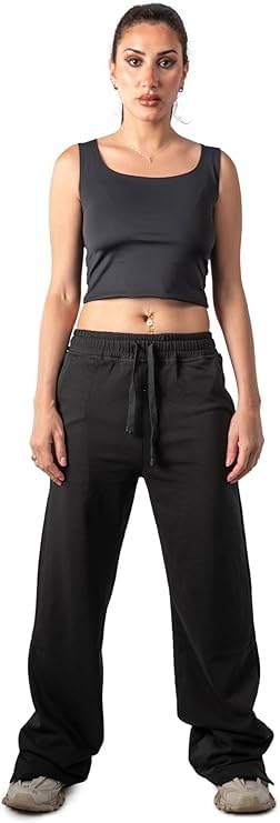 Generic - بنطال رياضي مريح وناعم من القطن واسع الساق للنساء من بلين دي في