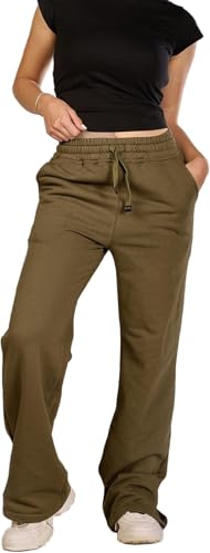 Generic - بنطلون رياضي قطني بارجل واسعة للنساء من بلين دي في، سروال مريح ناعم، ملابس كاجوال