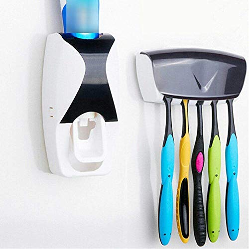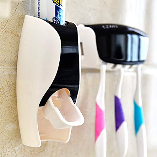 Plenteous - موزع معجون أسنان اوتوماتيك بلاستيك وعصارة تثبت على الحائط مع حامل فرشاة أسنان بـ 5 فتحات قابل للفصل من بلينتيوس (متعدد الألوان)