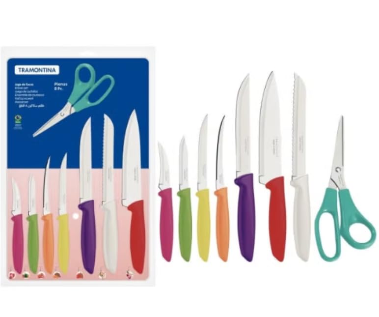 generic - سكاكين بلينوس ومقص بشفرات متينة ومقابض متعددة الألوان لجميع احتياجات المطبخ، مجموعة مكونة من 7 سكاكين و1 مقص