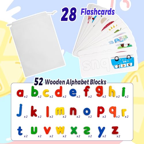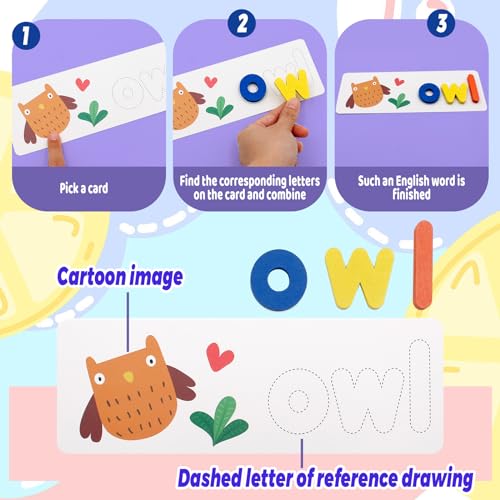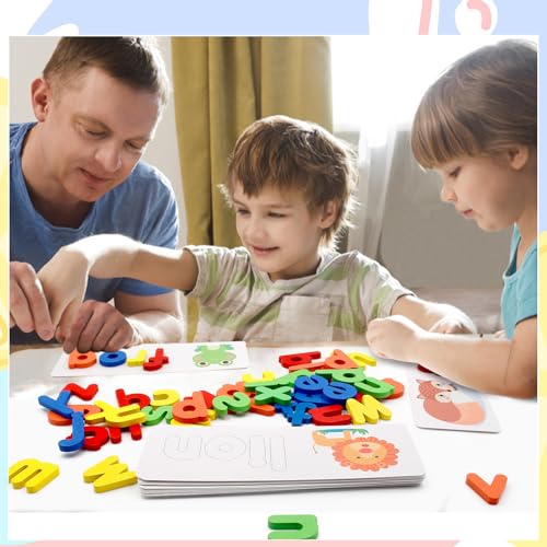 - 【ألعاب للأطفال من سن 3 سنوات】تحتوي ألعاب أحجية الحروف على 28 بطاقة كلمات على الوجهين و52 حرفًا صغيرًا ملونًا لتطوير عقول الأطفال وتعزيز التعرف على 26 حرفًا صغيرًا.