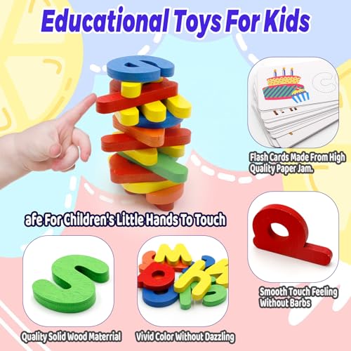 Plinrax - ألعاب بازل بتصميم حروف للأطفال من بلينراكس، ألعاب بطاقات فلاش الحروف الأبجدية خشبية لتعلم الكلمات والتهجئة، ألعاب تعليمية للكلمات المتطابقة للأولاد والبنات من سن 2-5 سنوات