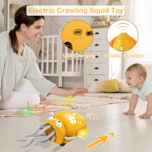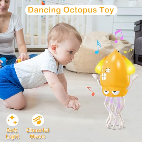 - ❤أخطبوط تفاعلي للرقص والزحف❤ هذا الأخطبوط الحيوي يهتز ويدور ويزحف مع إضاءة ليد ملونة وموسيقى ممتعة، مما يشجع الأطفال على الزحف والمشي. مثالية للتطور الحسي واللعب النشط.