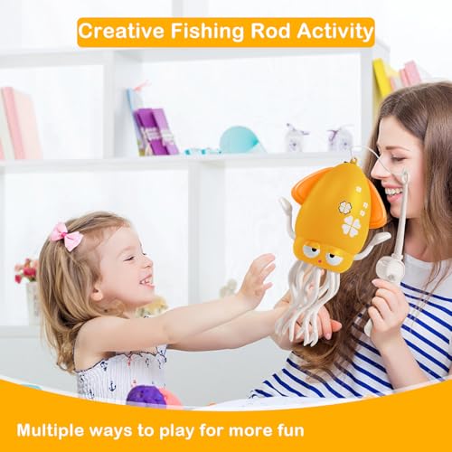 - ❤لعبة صنارة صيد ممتعة❤ تتضمن مجموعة اللعب التفاعلية هذه صنارة صيد قابلة للفصل تتيح للأطفال الصغار "التقاط" الأخطبوط الراقص وأخذه في مغامرات خيالية. تشغل الرضع خلال وقت البطن الهامة لنموه. تشجع لعبة الحبار الخاصة بنا على نمو عضلات الرقبة/ والظهر.