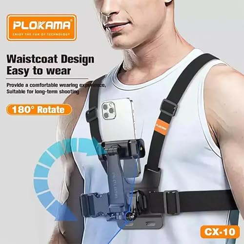 Generic - حامل كاميرا يثبت على الصدر CX-10 حزام صدر قابل للتعديل، مشبك حزام للموبايل من بلوكوما