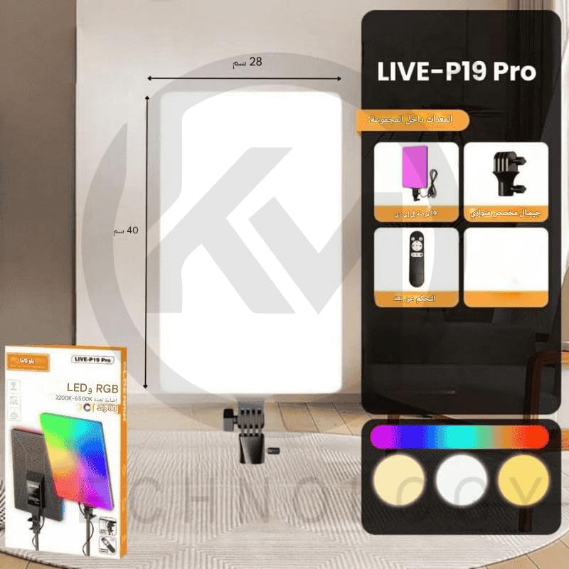 - ارتقِ بإعداد التصوير الفوتوغرافي وتسجيل الفيديو الخاص بك مع مجموعة الإضاءة لايف بي 19 برو متعددة الاستخدامات. توفر لوحة LED إضاءة بجودة احترافية مع إمكانية التحكم عن بعد، مثالية لالتقاط الصور في الاستوديو وإنشاء المحتوى.