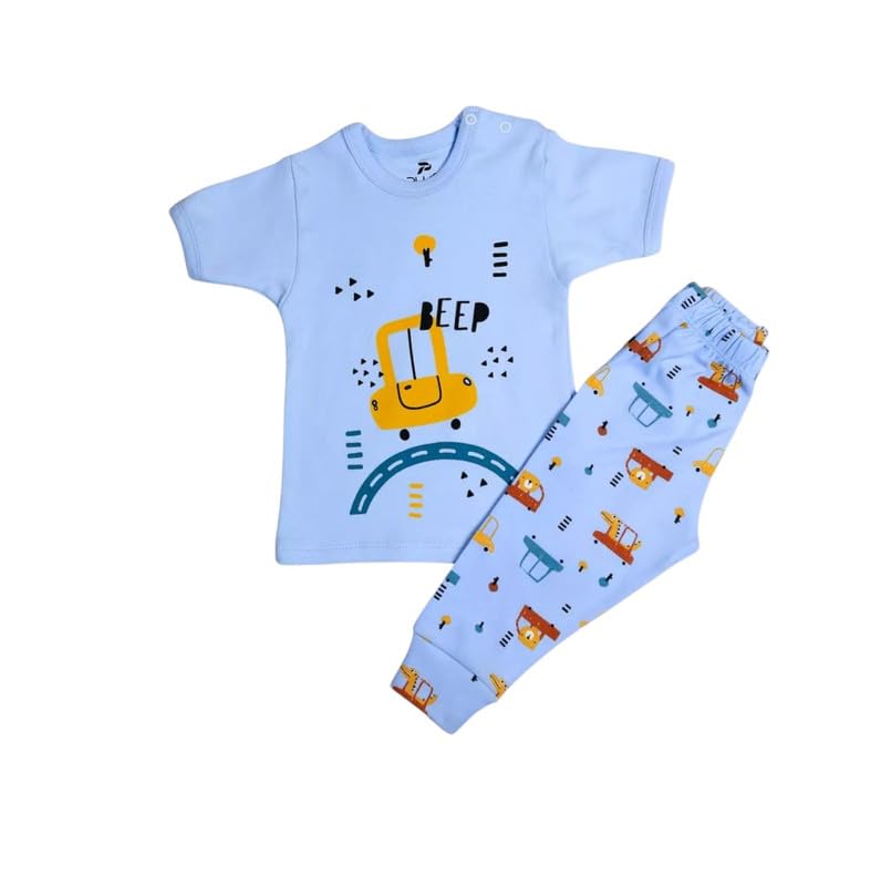 Plu2 - طقم بيجامة سيارة للاطفال من بلو2، قطعتين - اكوا