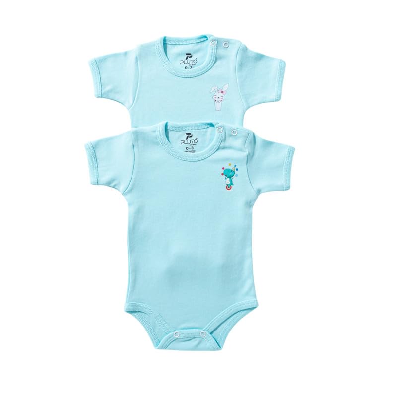 PLU2 Kids - طقم سالوبيت بكباسين نصف اكمام من القطن للاولاد البيبي من بلو2، قطعتين - ازرق