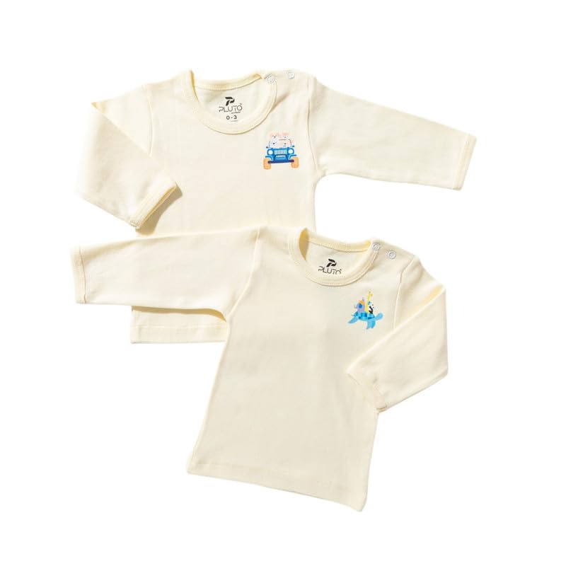 PLU2 Kids - طقم فانلة قطن باكمام طويلة وتصميم خاص للاولاد البيبي من بلو2، قطعتين - اصفر