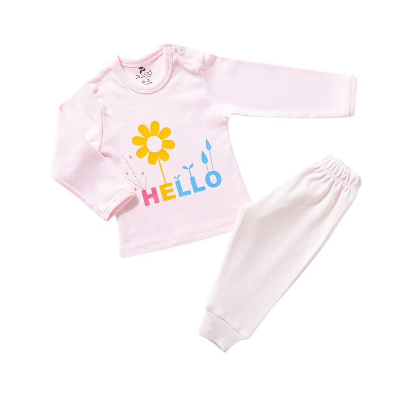 PLU2 Kids - طقم بيجامة قطن بتصميم لطيف للبنات البيبي من بلو2، قطعتين - متعدد الالوان