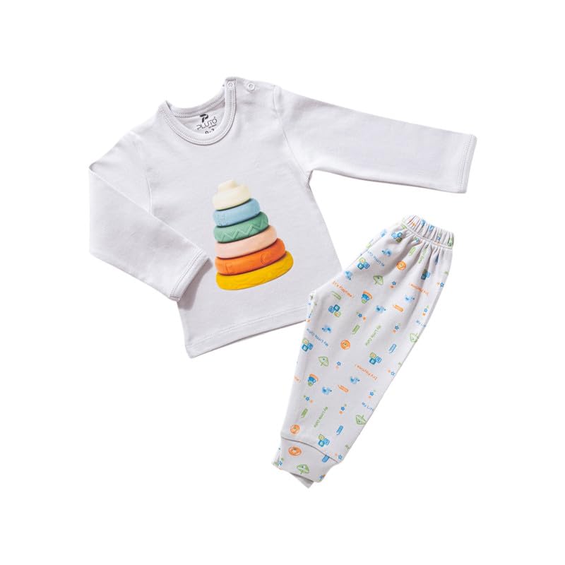 PLU2 Kids - طقم بيجامة قطن بتصميم خاص للاولاد البيبي من بلو2، قطعتين - متعدد الالوان